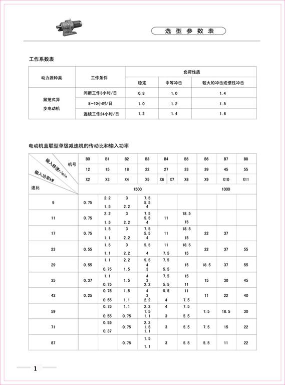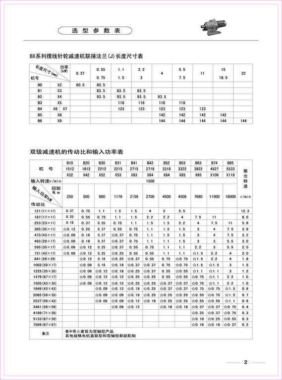 減速機(jī)|擺線針輪減速機(jī)-B、X系列擺線針輪減速機(jī)選型參數(shù)表-海洋傳動(dòng)