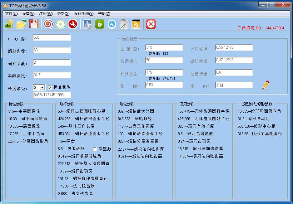 按常規(guī)方式計(jì)算二次包絡(luò)蝸桿副的各項(xiàng)參數(shù)相當(dāng)復(fù)雜,而且計(jì)算各項(xiàng)參數(shù)時(shí)很容易計(jì)算或者填寫(xiě)錯(cuò)誤,一旦出錯(cuò)加工時(shí)所造成的原材料及工時(shí)的損失巨大。本軟件計(jì)算式只需要中心距和速比,只要這兩個(gè)參數(shù)不出錯(cuò) 其它計(jì)算都時(shí)以電腦計(jì)算完成,出錯(cuò)率幾乎為零。而且計(jì)算出來(lái)的數(shù)據(jù)都以保留3位小數(shù)為準(zhǔn)。